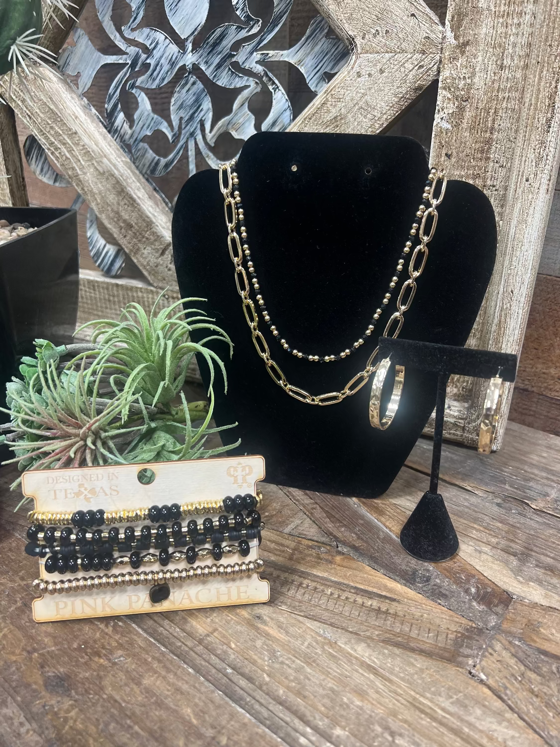 {"id":44499518816438,"title":"Gold","option1":"Gold","option2":null,"option3":null,"sku":null,"requires_shipping":true,"taxable":true,"featured_image":{"id":40095669780662,"product_id":8387689316534,"position":2,"created_at":"2026-01-14T11:33:24-06:00","updated_at":"2026-01-26T14:45:05-06:00","alt":null,"width":1126,"height":1500,"src":"\/\/horsecreekboutique.com\/cdn\/shop\/files\/IMG-0615.heic?v=1769460305","variant_ids":[44499518816438]},"available":true,"name":"Gracie Black \u0026 Gold Chain Necklace - Gold","public_title":"Gold","options":["Gold"],"price":2450,"weight":0,"compare_at_price":null,"inventory_quantity":4,"inventory_management":"shopify","inventory_policy":"deny","barcode":"18816438","featured_media":{"alt":null,"id":31665774526646,"position":2,"preview_image":{"aspect_ratio":0.751,"height":1500,"width":1126,"src":"\/\/horsecreekboutique.com\/cdn\/shop\/files\/IMG-0615.heic?v=1769460305"}},"requires_selling_plan":false,"selling_plan_allocations":[],"quantity_rule":{"min":1,"max":null,"increment":1}}