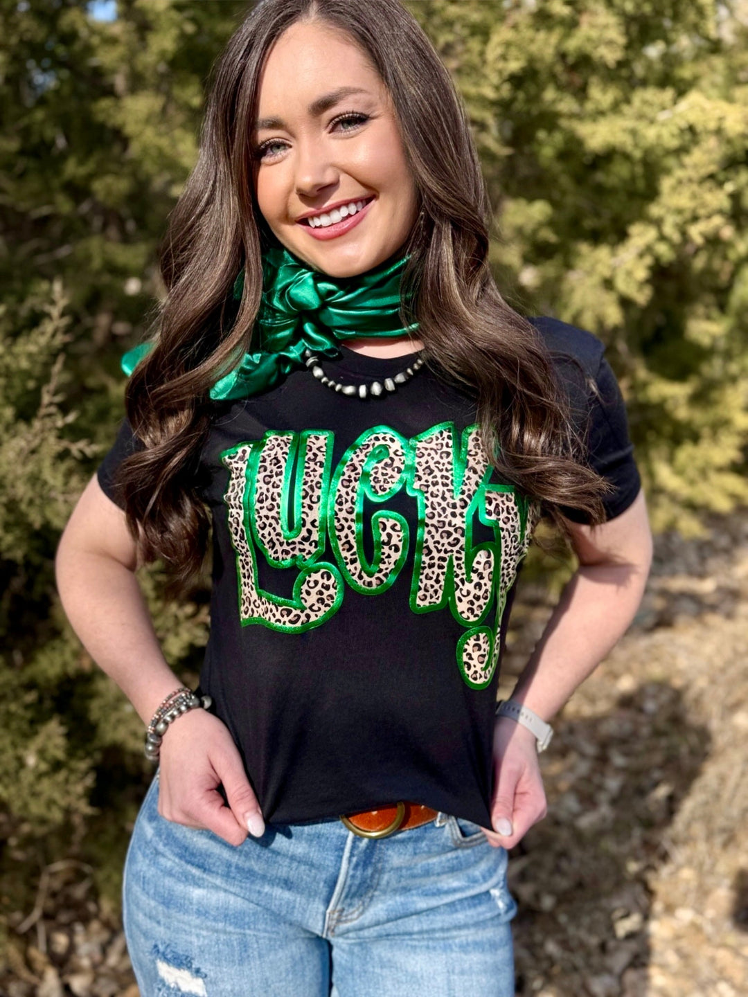 Leopard Lucky with Green Puff Tee by Texas True Threads
