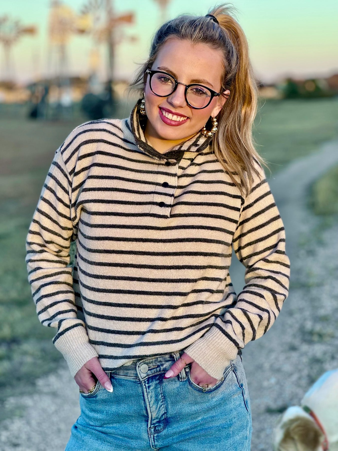 A striped pullover is always a smart style move and this one takes it up a notch with it's button-up neckline.