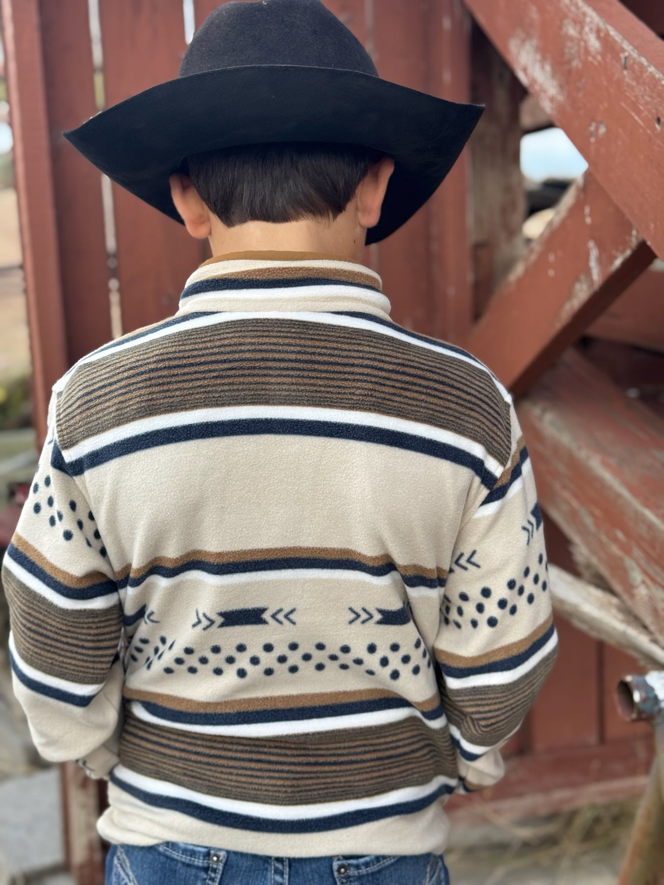Dress your boy for whatever the day brings wearing our cozy cream printed polar fleece pullover by Cinch!