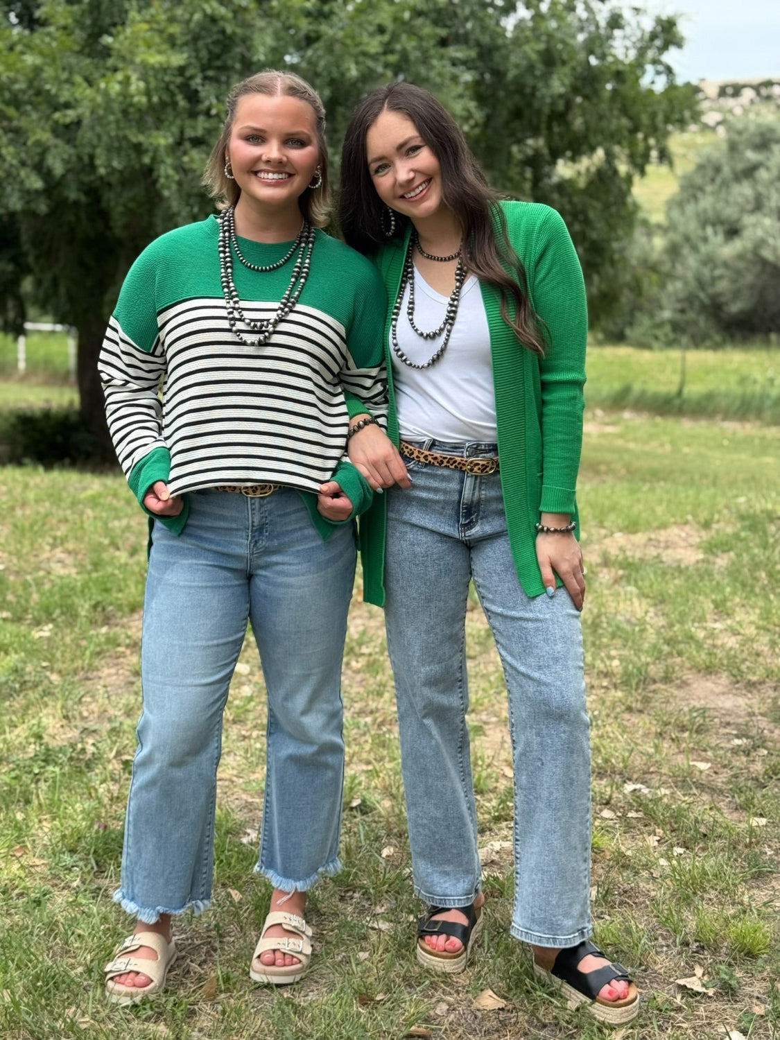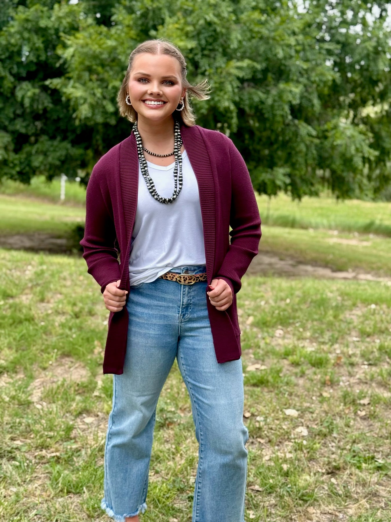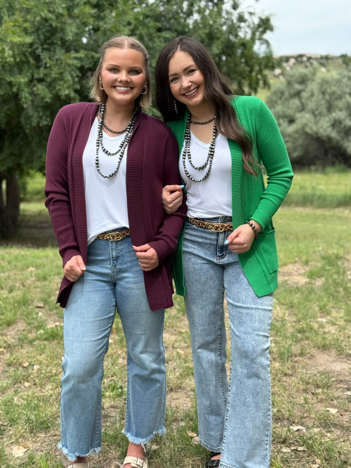 Our top selling super soft cardigan in a maroon and kelly green color!