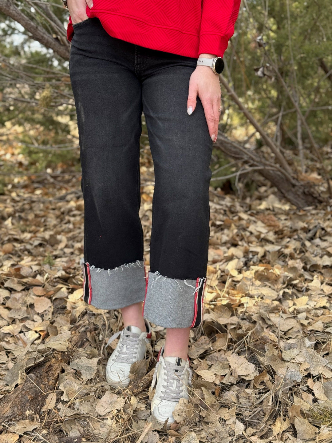 Cooper Black Front Pocket Ankle Flare Jean by Risen