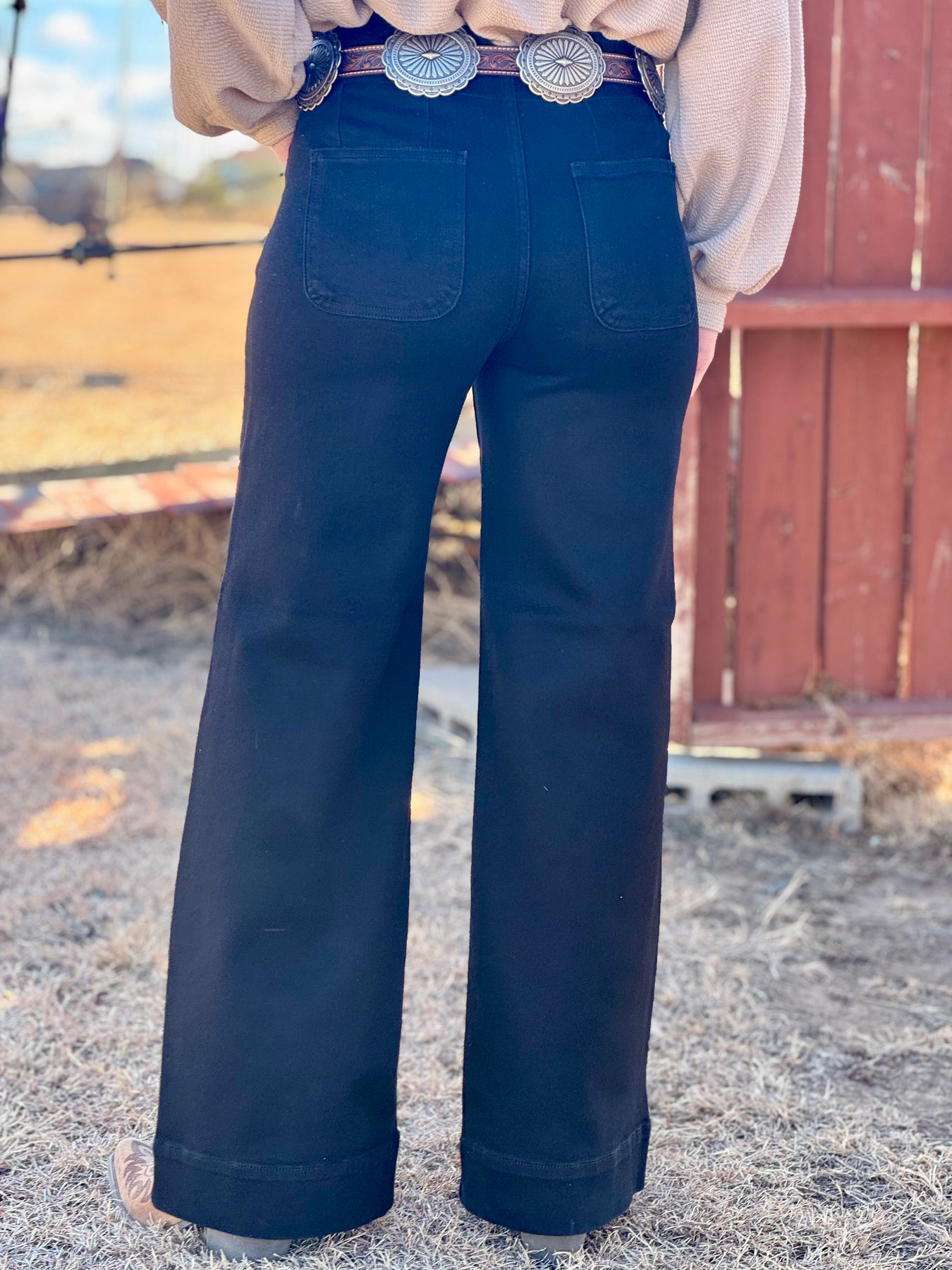 You've been waiting on this pair of solid black trouser jeans by Risen