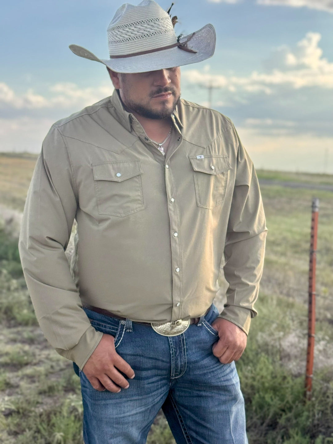 Core - Men's Khaki Long Sleeve Snap Shirt by Ferrell