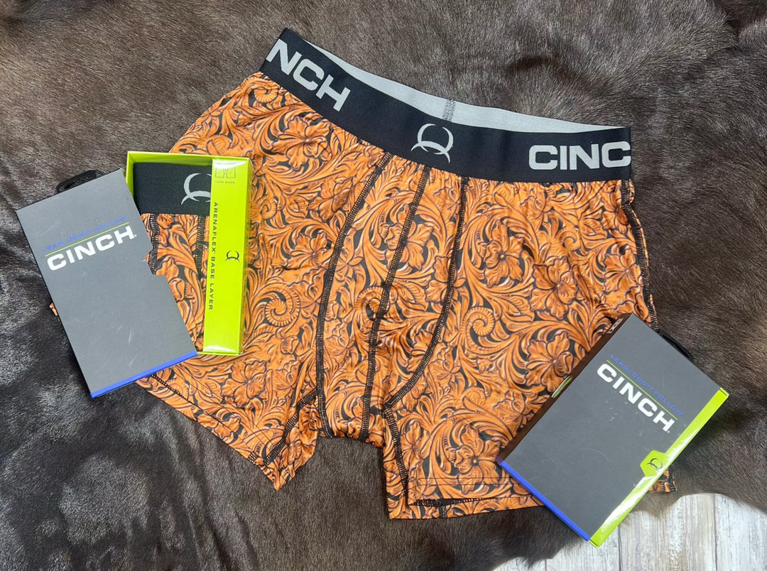 - Brown Tooled Leather look a like design on these Loose Boxer Briefs by Cinch