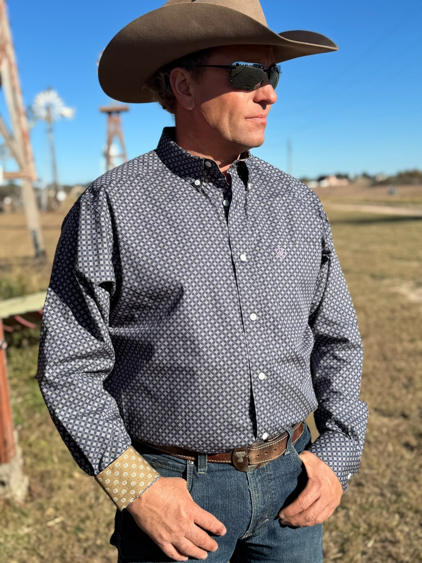 Dale Navy Geometric Print Wrinkle Free Shirt by Ariat