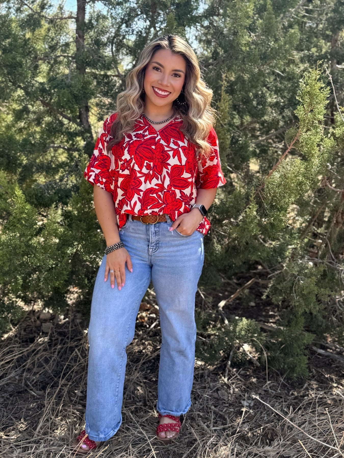 Add some color to your wardrobe with our Floral V-Neck Shift Top!