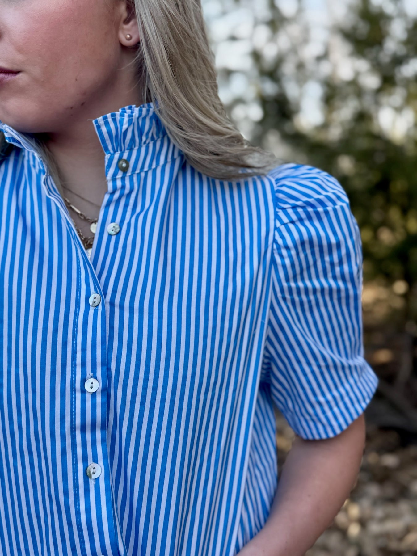 Stand up ruffle collar adds style of flirty and fun
