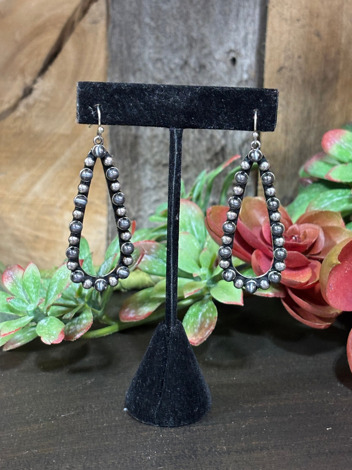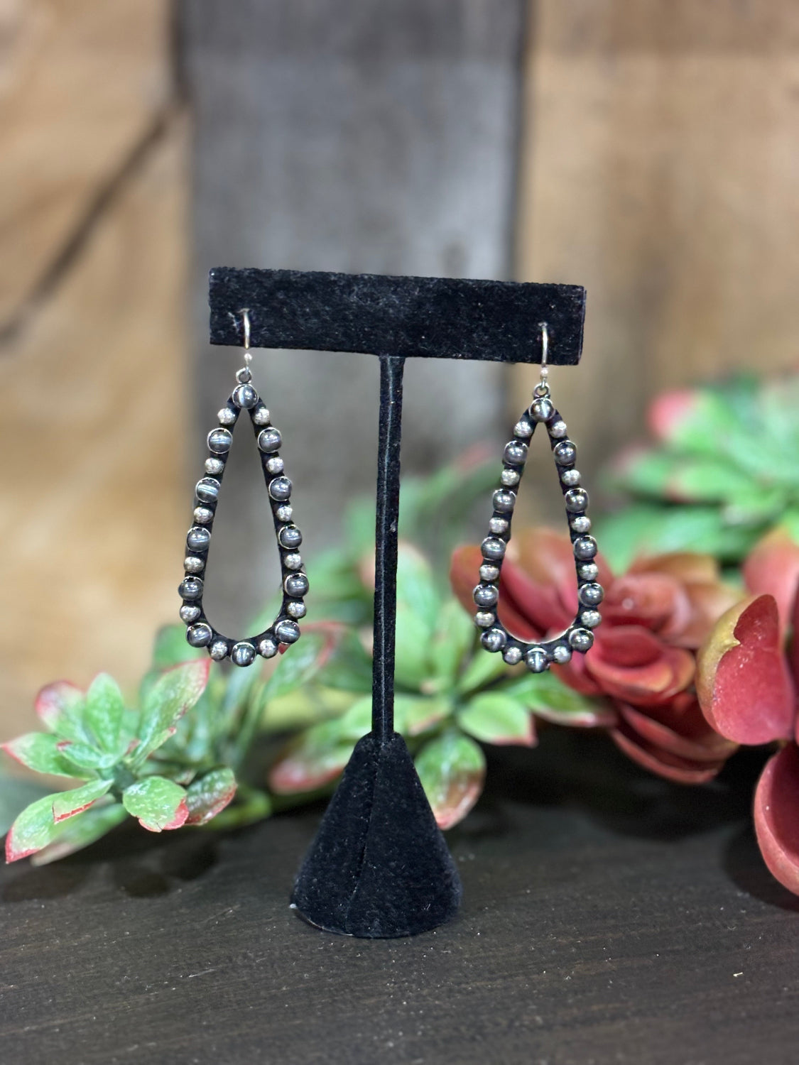 Teardrop earrings with silver beads
