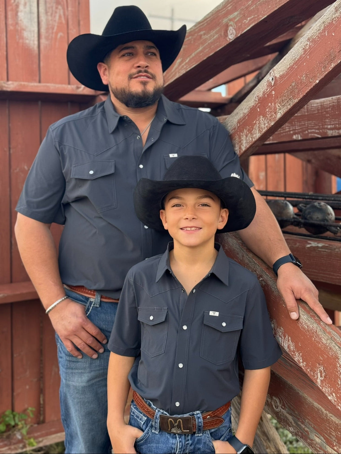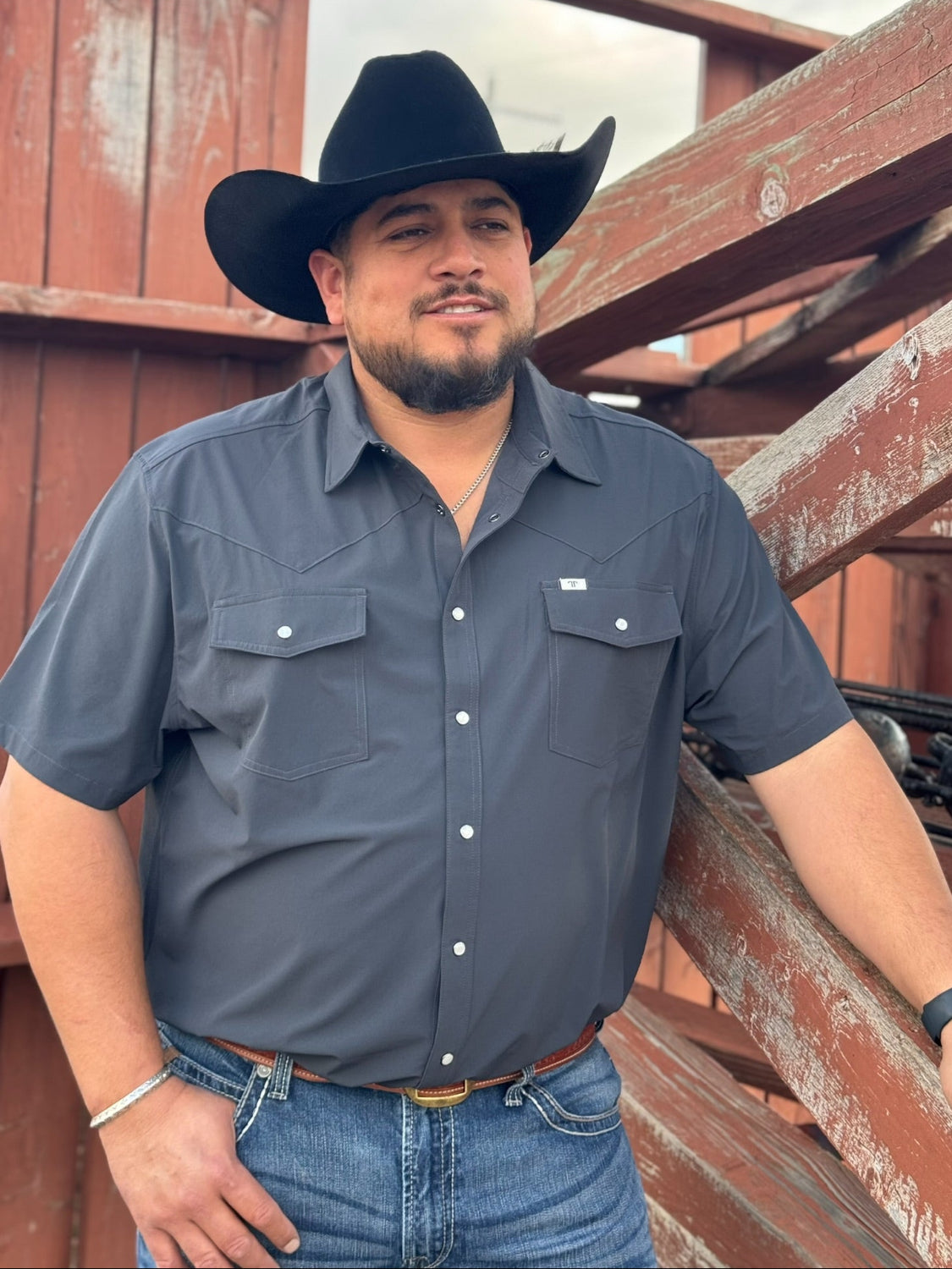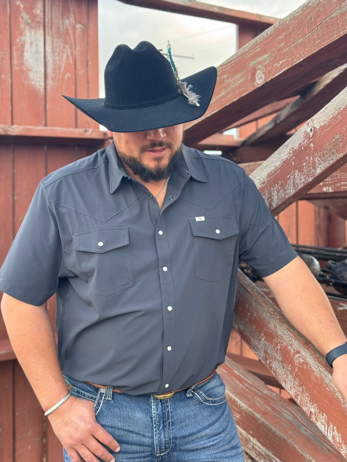 The original solid dark grey CORE short sleeve snap shirt. Works hard, plays hard.