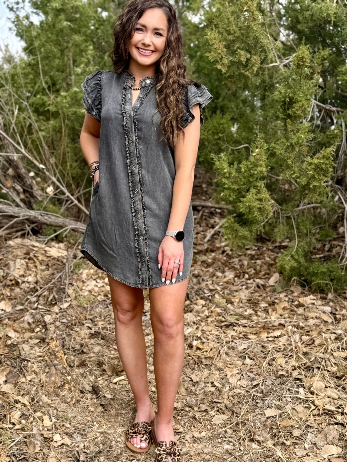 Elevate your everyday style with this enzyme, stone, and snow washed denim mini dress. Crafted from 100% Tencel, it offers a soft, breathable feel with a gentle drape.