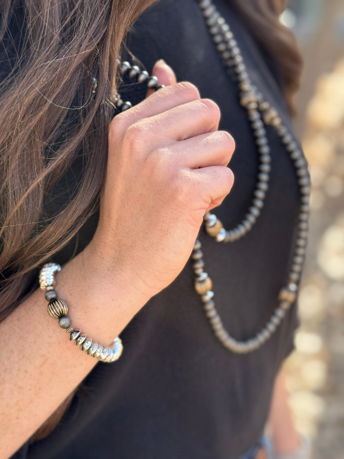 Silver: Faux Navajo Beads with all silver burnished melon accents