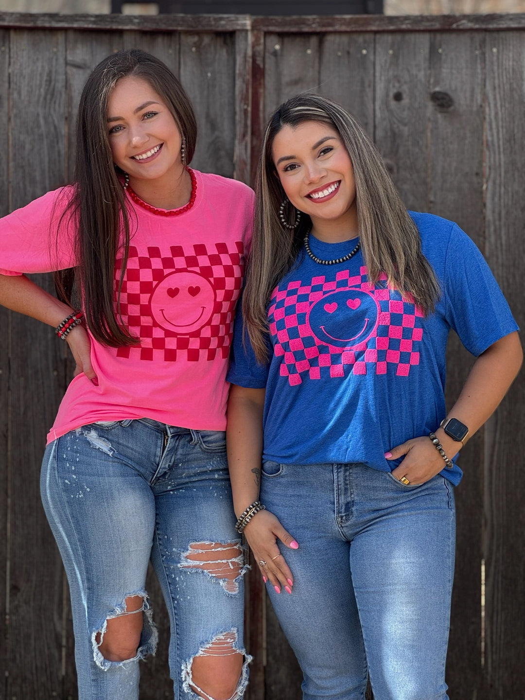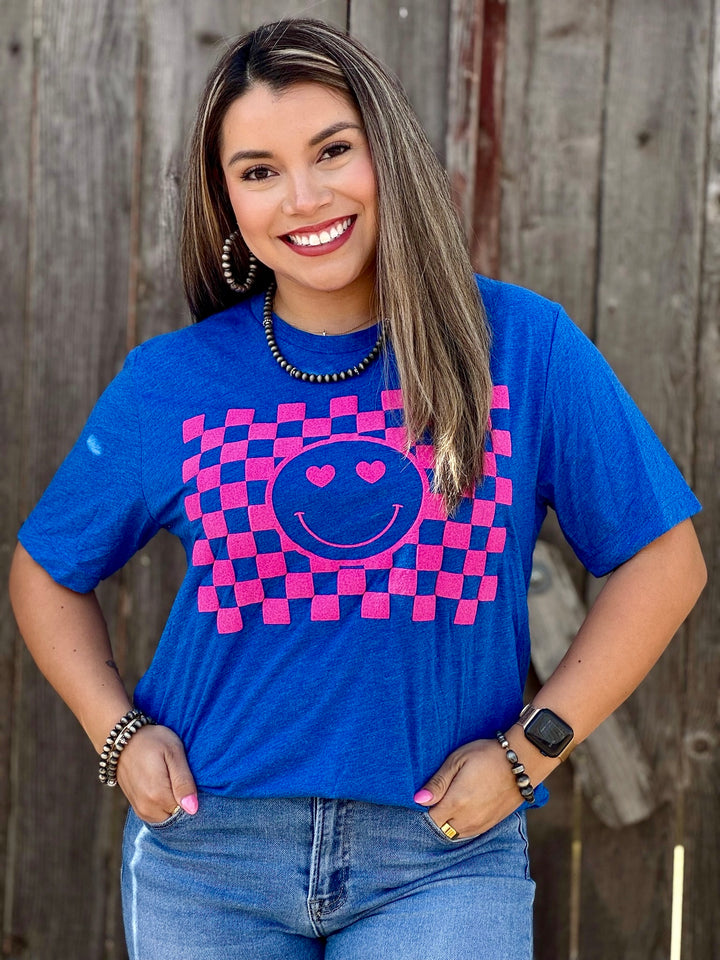 Smiley Face in Pink Puff Ink Graphic Tee by Texas True Threads
