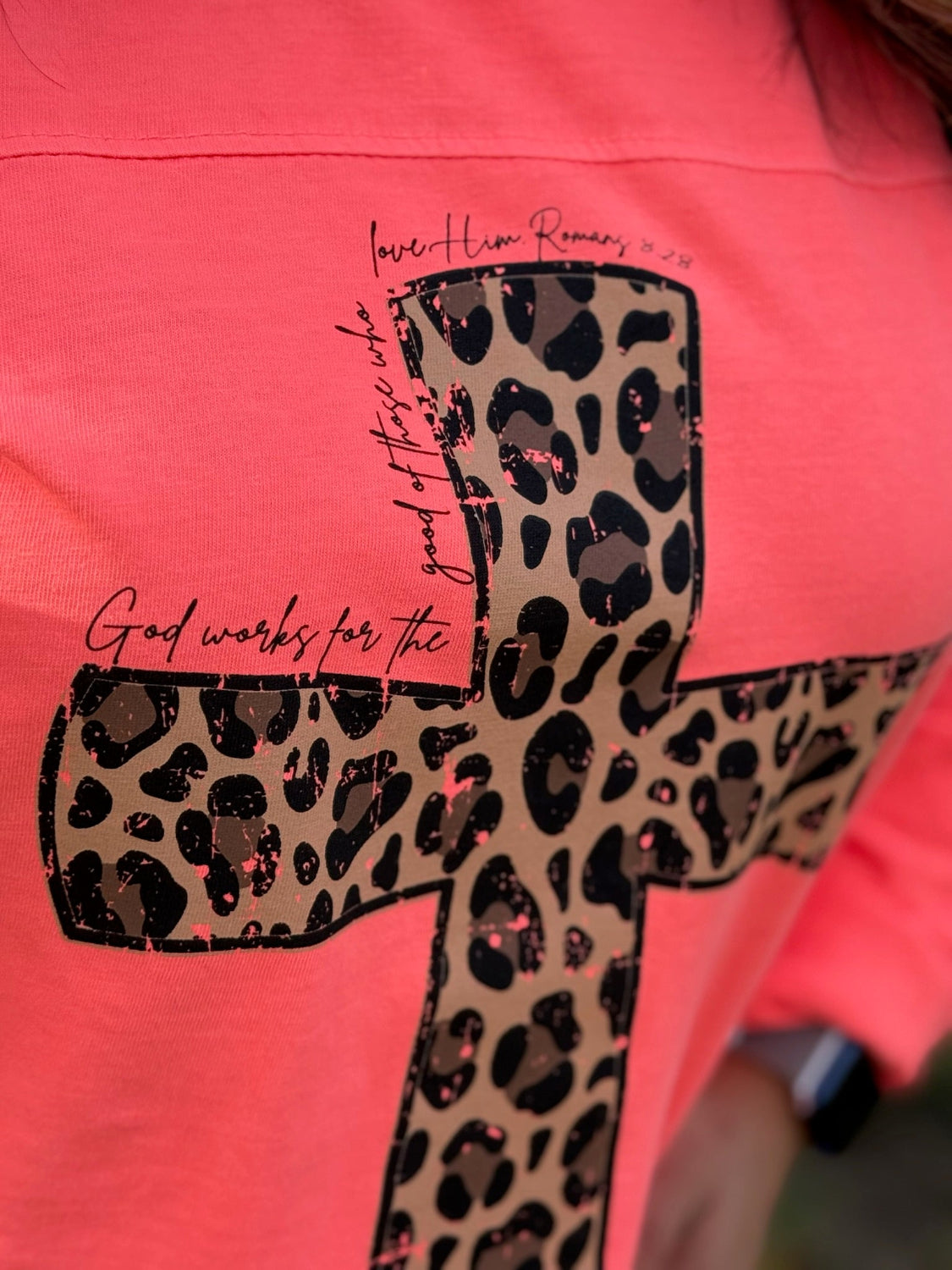 Leopard Cross Long Sleeve Graphic Tee by Texas True Threads