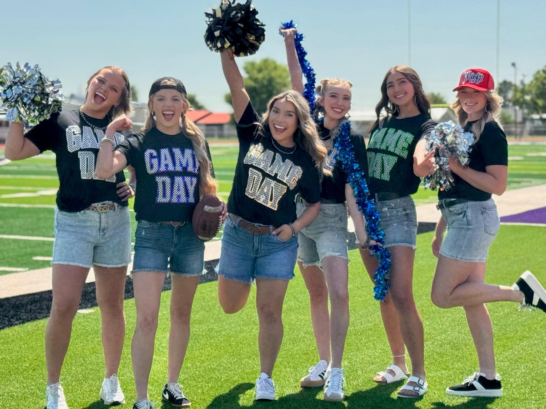 This checkered game day is our favorite design yet!! Outlined with a pop of shimmery puff makes it even cuter! Do not miss out on these!!