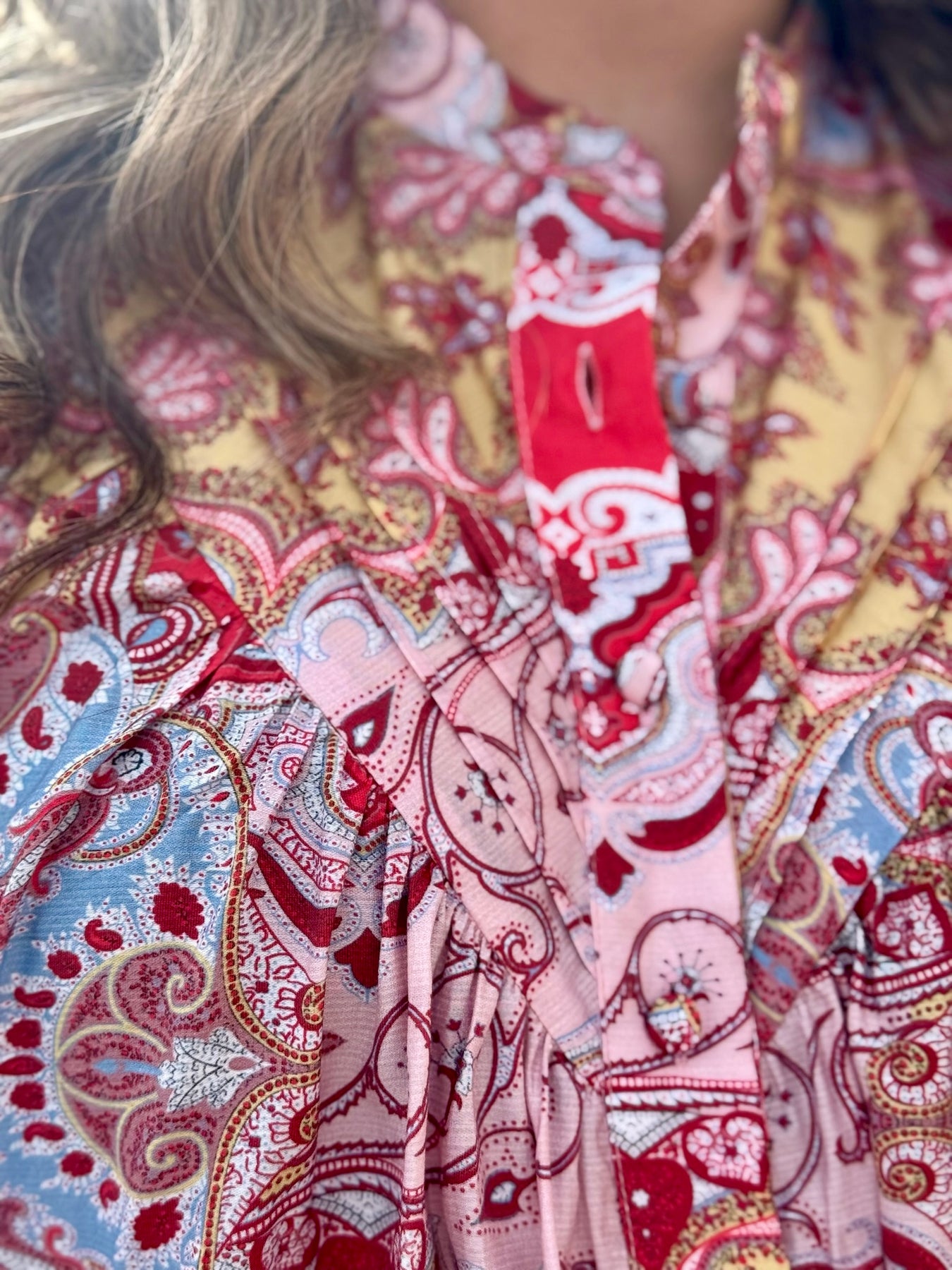 Flow with elegance from boardroom to brunch date in this vibrant hued blouse