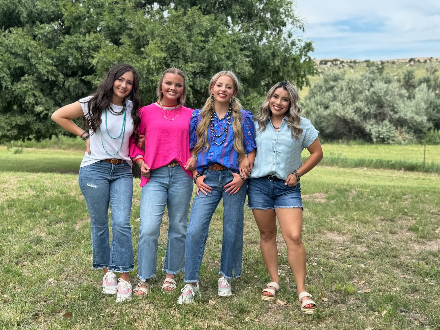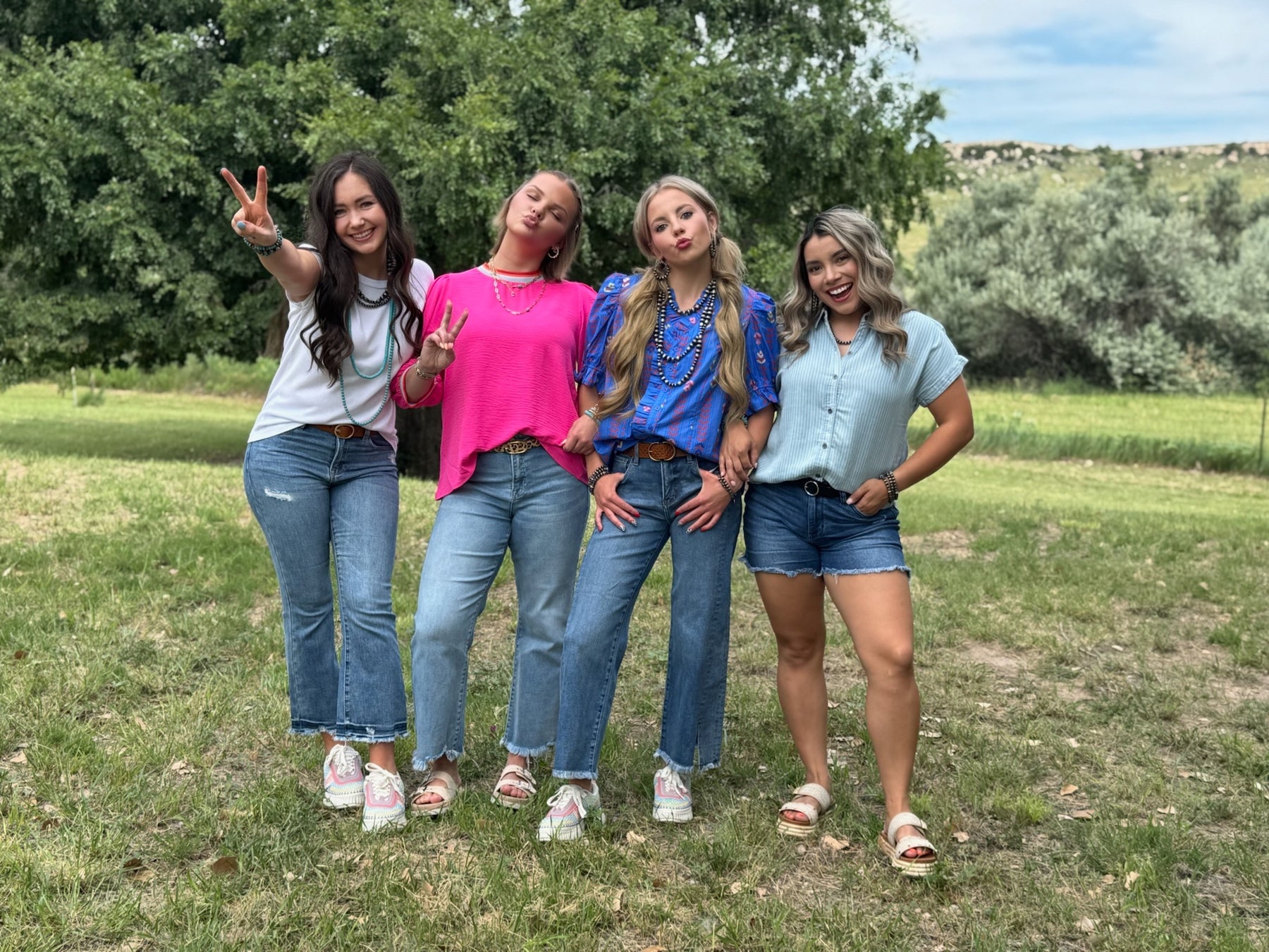 This solid top features a classic U-neck design, complemented by three-quarter peasant sleeves for a touch of volume and style.