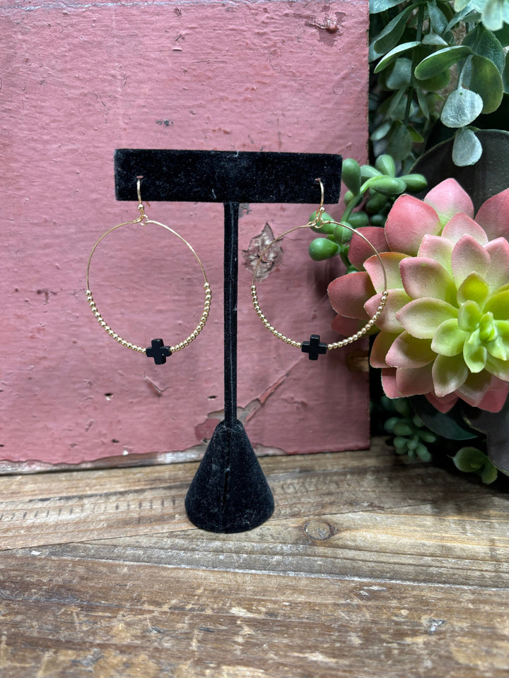 Rant Gold & Black Cross Hoop Earrings