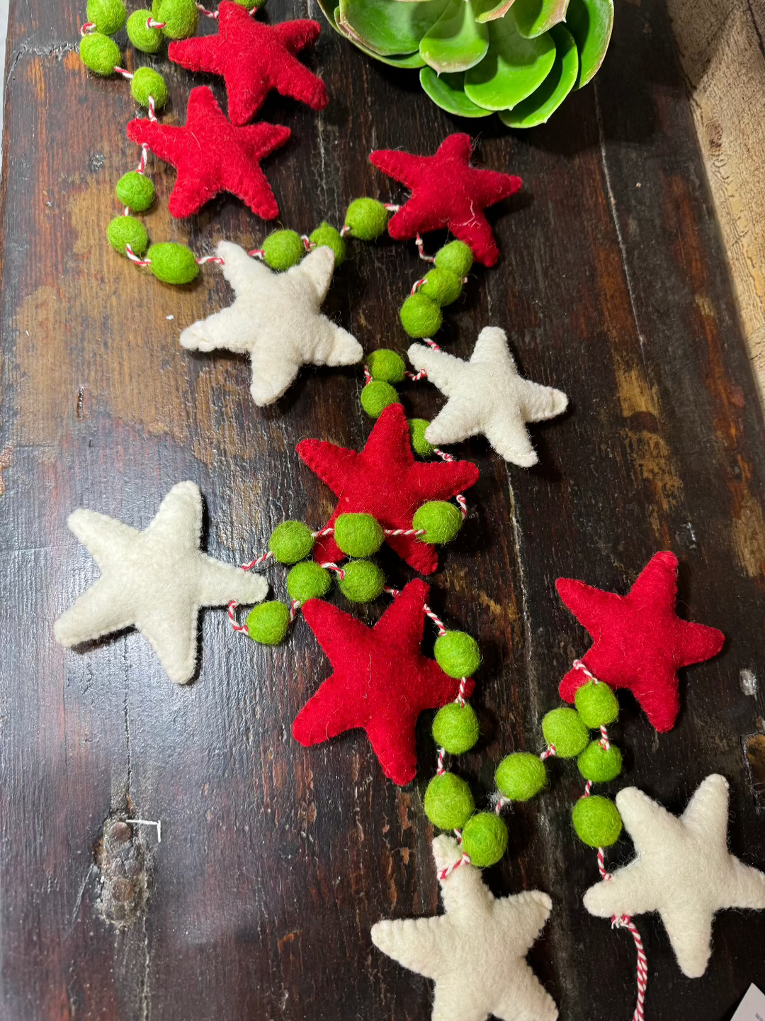 - Elevate your Christmas decor with this fun Felt Banner featuring Red & White Stars and Green PomPoms!